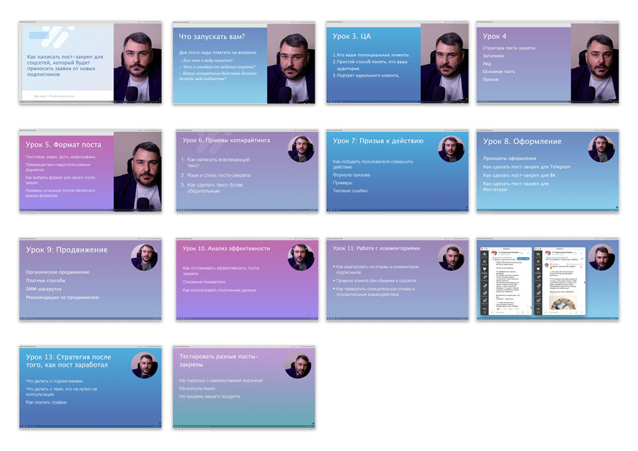 И теперь я упаковал свой опыт в 2-часовой курс, в котором делюсь с вами тонкостями создания постов-закрепов для разных соцсетей.