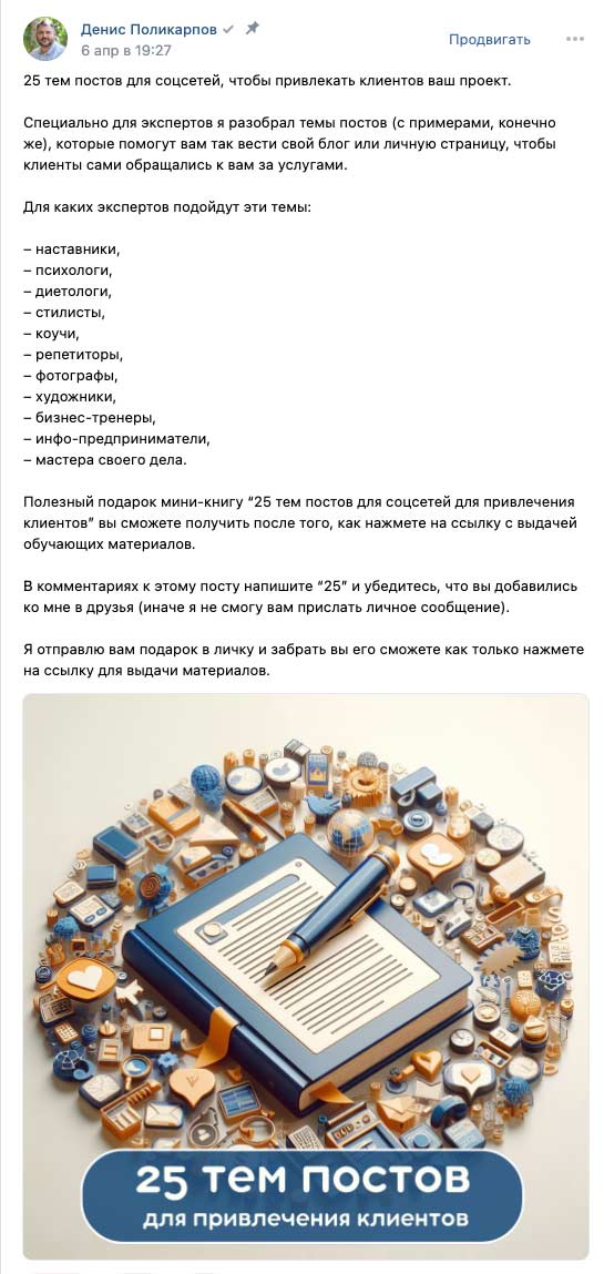 И каждый месяц с этого поста-закрепа я получаю в базу 40-50 человек только из ВК, не считая Телеграм.